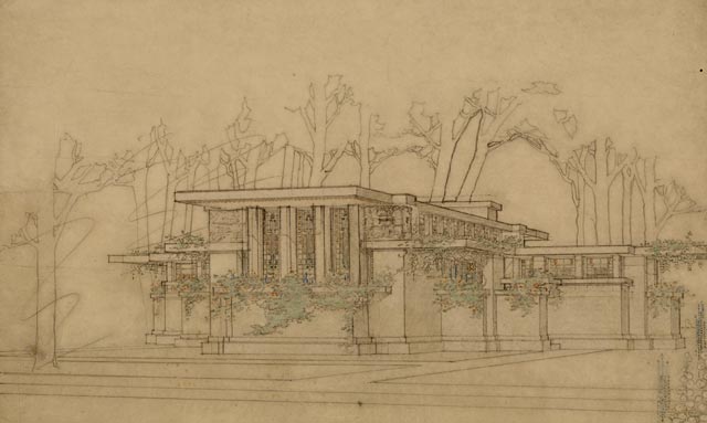 flw_coonley Published September 18, 2012 at 640 × 383 in The Inspirations: Frank Lloyd Wright ← Previous Next → Coonley House Sketch by Frank Lloyd Wright
